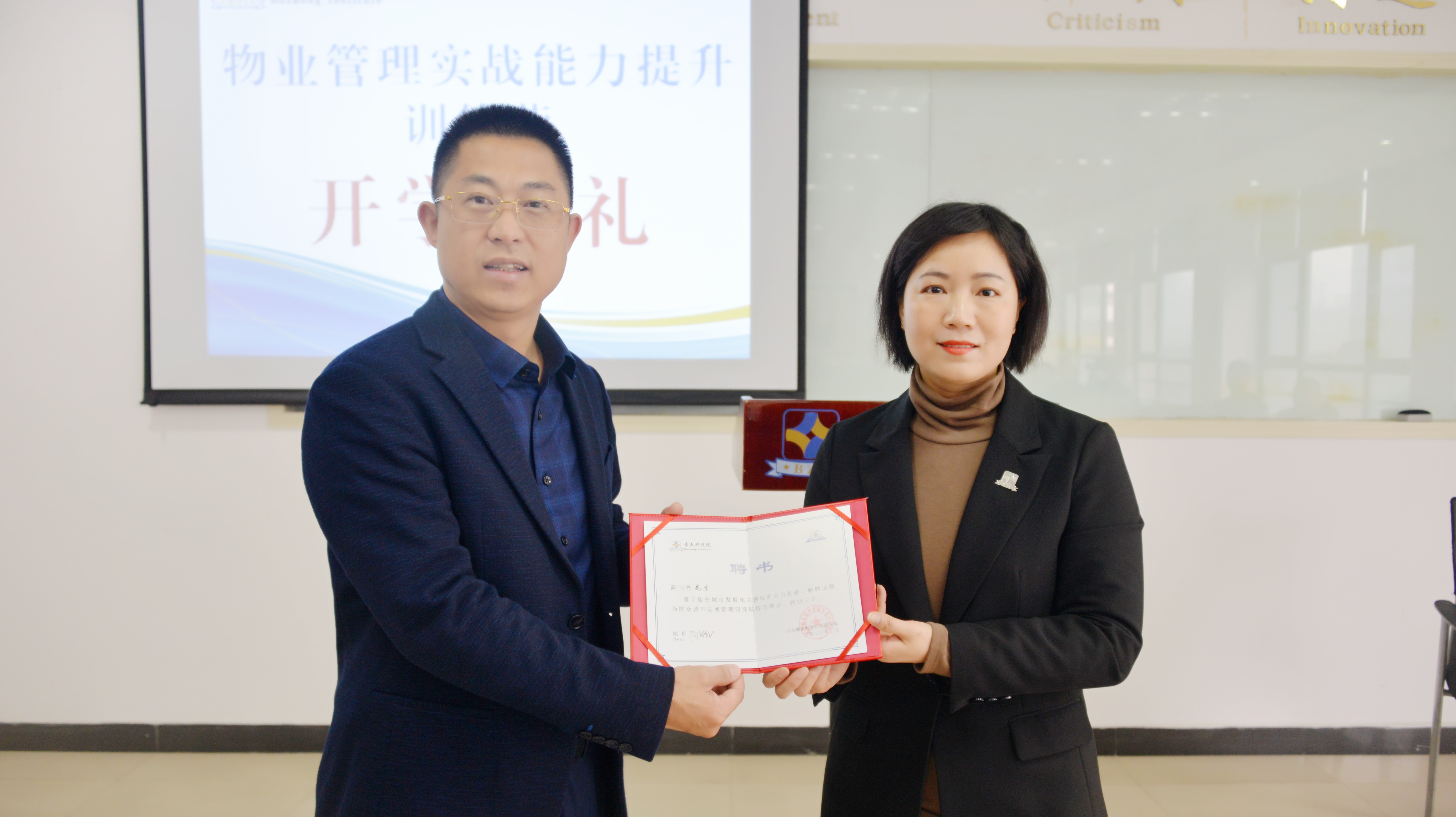 向陈国光老师颁发博众研究院特聘教授聘书