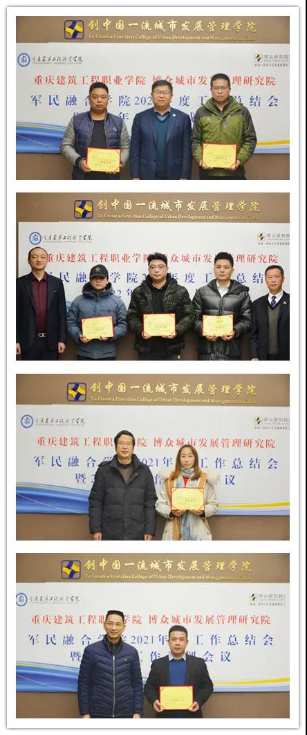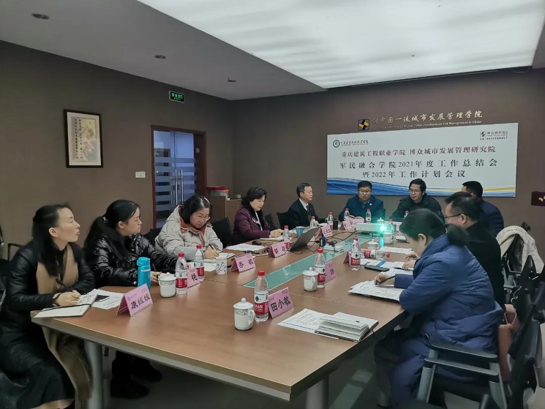 2022年1月21日,重庆建筑工程职业学院-博众城市发展管理研究院军民融合学院在博众研究院召开了2021年度工作总结暨2022年工作计划会。