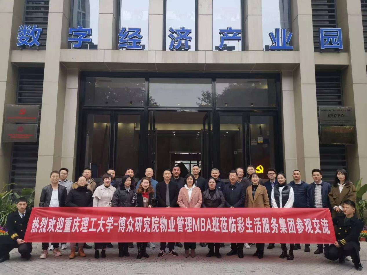 2023年2月18日,重庆理工大学-博众研究院物业管理MBA9班学员一行,在博众研究院校友会主任黄定谊老师、院长助理代雪萍的带领下,走访物业管理MBA9班校友企业———深圳市彩生活服务集团有限公司重庆事业部,参观学习公司管理的重庆两江数字经济产业园一期的党建引领、园区规划、设备用房、园区环境等,并开展座谈交流会。活动邀请了物业管理MBA8班和10班部分学员代表参加。