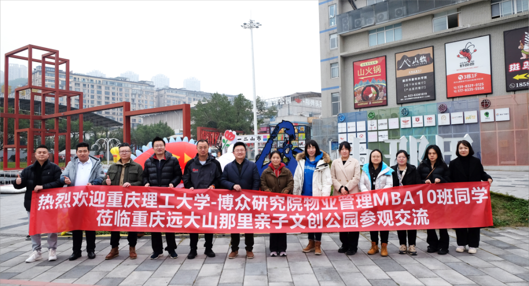 2024年1月6日,重庆理工大学-博众研究院物业管理MBA校友一行15余人,与博众研究院副院长代雪萍、辅导员王莉莉老师一起走进远大山那里亲子文创公园,开展“城市更新 体验美好生活”座谈交流活动并参观园区。