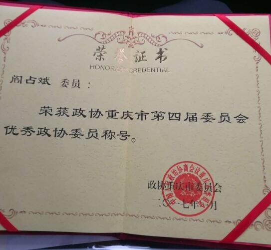 2017年1月18日,重庆市政协四届五次会议举行表彰大会,博众房地产管理研究院执行院长阎占斌荣获重庆市政协第四届“重庆市优秀政协委员”称号。
