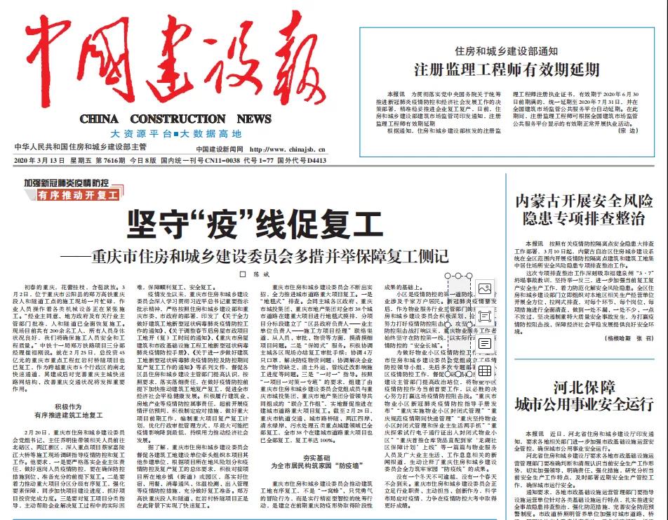 特转发自2020年3月13日《中国建设报》头版头条报道。