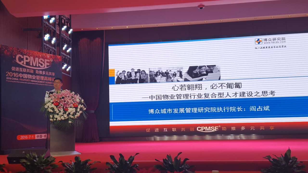 7月1日,由中国经济时报、每日经济新闻、商界杂志联合主办,成都通威文化传媒有限公司承办,博众城市发展管理研究院协办的 “2016中国物业管理高峰论坛”在成都通威国际中心隆重举行。