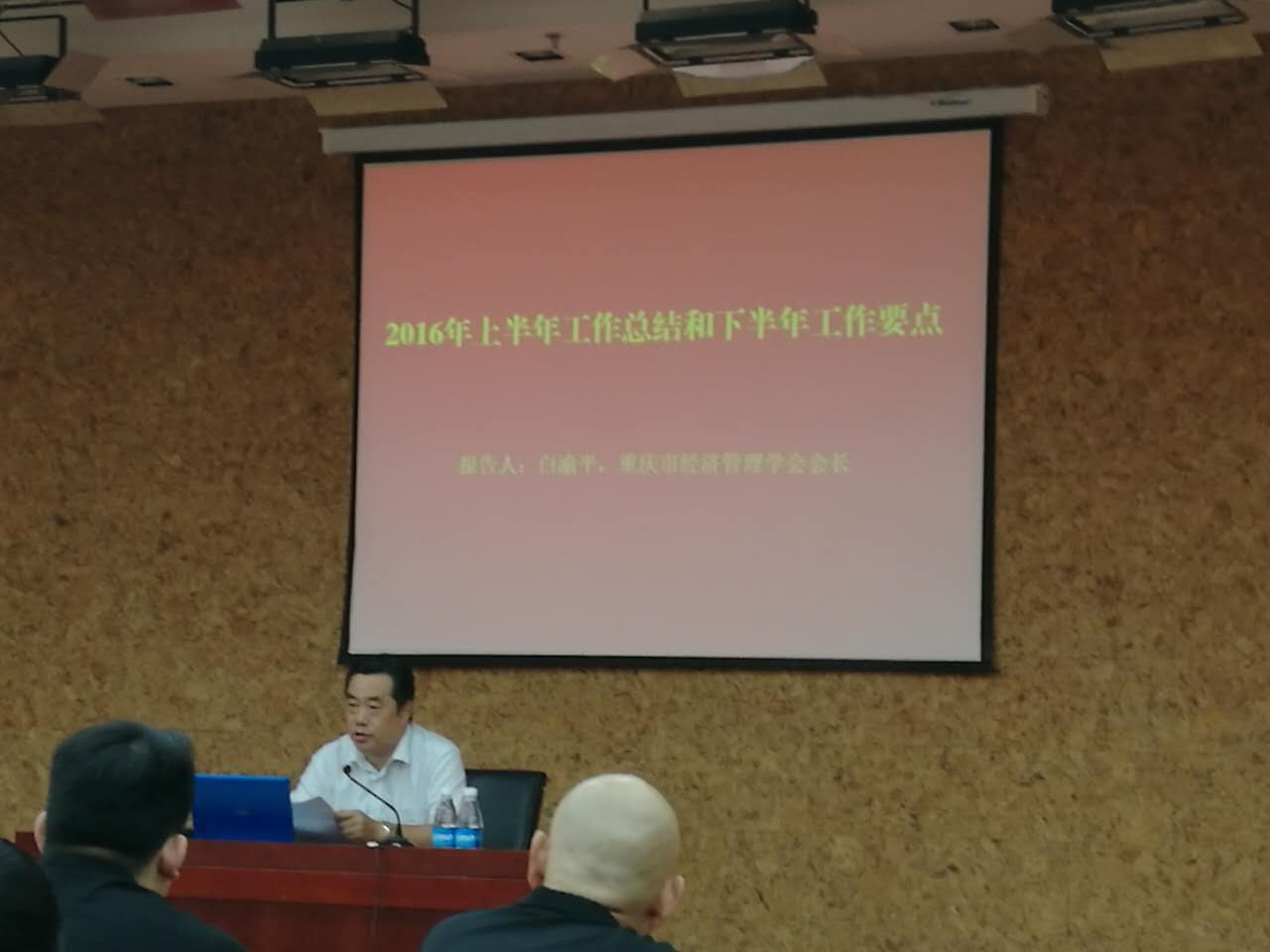 会议由重庆市经济管理学会常务副会长甘永祥主持。首先有重庆市经济管理学会白渝平会长代表重庆市经济管理学会作《重庆市经济管理学会2016年上半年工作总结和下半年工作要点》报告,白渝平会长对学会上半年的工作总结出以下几点: