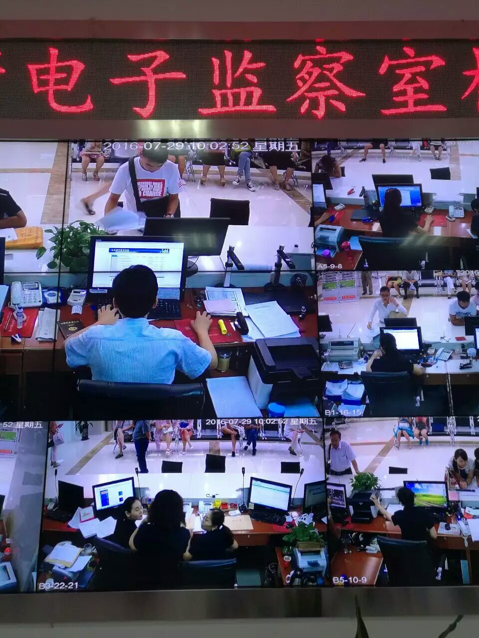 针对大厅工作人员态度不好,脸难看怎么办?大厅电子监察室对办公人员实现上班时间全方位无盲点的电子监督,安置电子服务评价器,重点岗还设了可让申请人看到审批操作过程的双向显示屏,让工作人员无处徇私,任性:长时间空岗,打瞌睡,玩手机,打游戏等9项监督指标明明白白,有专人填写。曾有一位工作人员上班时间用手机与人约饭,被电子摄像头捕捉到,经放大截屏,证据确凿而受处罚,有人因未按规定着装穿了牛仔裤而被记录等候处理,当然,你觉得要干私事而怕监督可以辞职自便,想尽办法把权利关进铁笼子里。