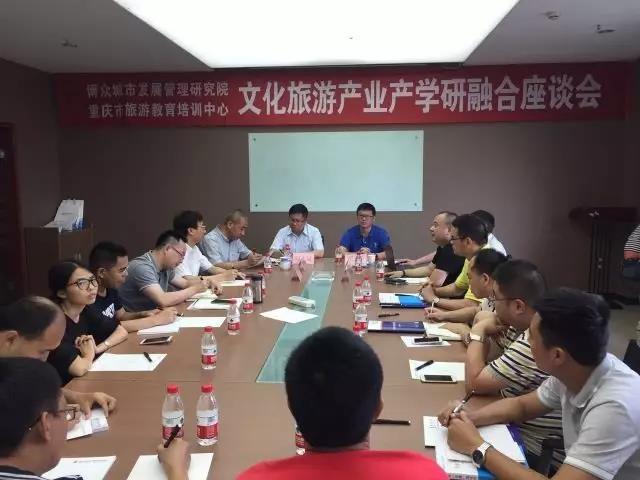为了更好地为文化旅游产业服务,解决文旅产业的实际需求,2017年7月15日下午,由博众城市发展管理研究院会同重庆市旅游教育培训中心举办的“文化旅游产业产学研融合座谈会”在博众研究院召开,博众研究院院长阎占斌,重庆市旅游教育培训中心副主任吴勇,重庆市旅游教育培训中心市场发展部部长张刚,博众研究院特聘专家、重庆师范大学旅游学院前院长罗兹柏,博众研究院特聘讲师、原万达集团营销副总经理孙晓冬,重庆名豪集团副总裁蒋德海、大鼎置业总经理李向龙、重庆沙坪坝文化旅游发展有限责任公司董事长罗书权及梁平区滑石寨度假村有限公司董事长周雪峰、重庆统景旅游开发有限公司董事长丁祝全等20余位来自市旅游教育培训中心文旅班观摩课学员参加了本次座谈会,会议由博众研究院副院长李平德主持。