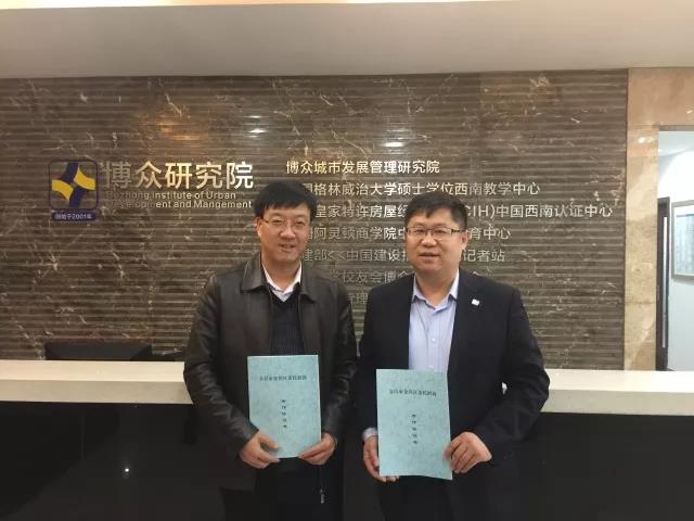 2017年12月3日,博众研究院院长阎占斌、副院长李平德接待甘肃省金昌市金川区区长周益民一行参观博众城市发展管理研究院,并在博众研究院举行金川区人民政府招商合作协议签约仪式,达成多项合作共识,周益民区长从金川区“十区建设”蓝图、投资环境等方面作 了相关介绍,希望通过合作密切陇渝两地招商合作关系,加强重庆、金川两地的合作交流,共同进步与发展。