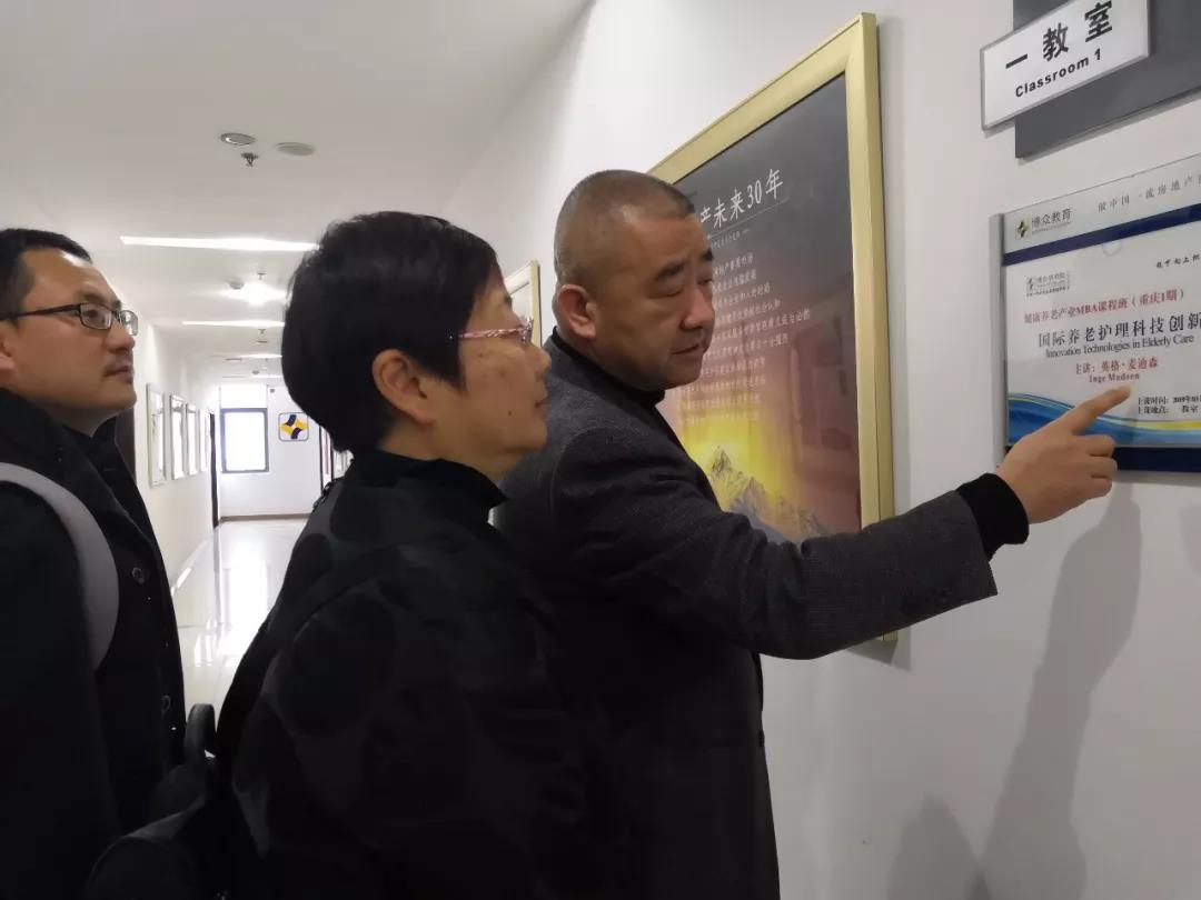 刘鸣会长一行还应邀观摩了丹麦VIA大学在博众研究院康养产业MBA首次教学课程《国际养老护理科技创新》,刘会长一行对博众研究院创新人才培养工作与高层次人才培养取得的成就的表示认可和赞许。