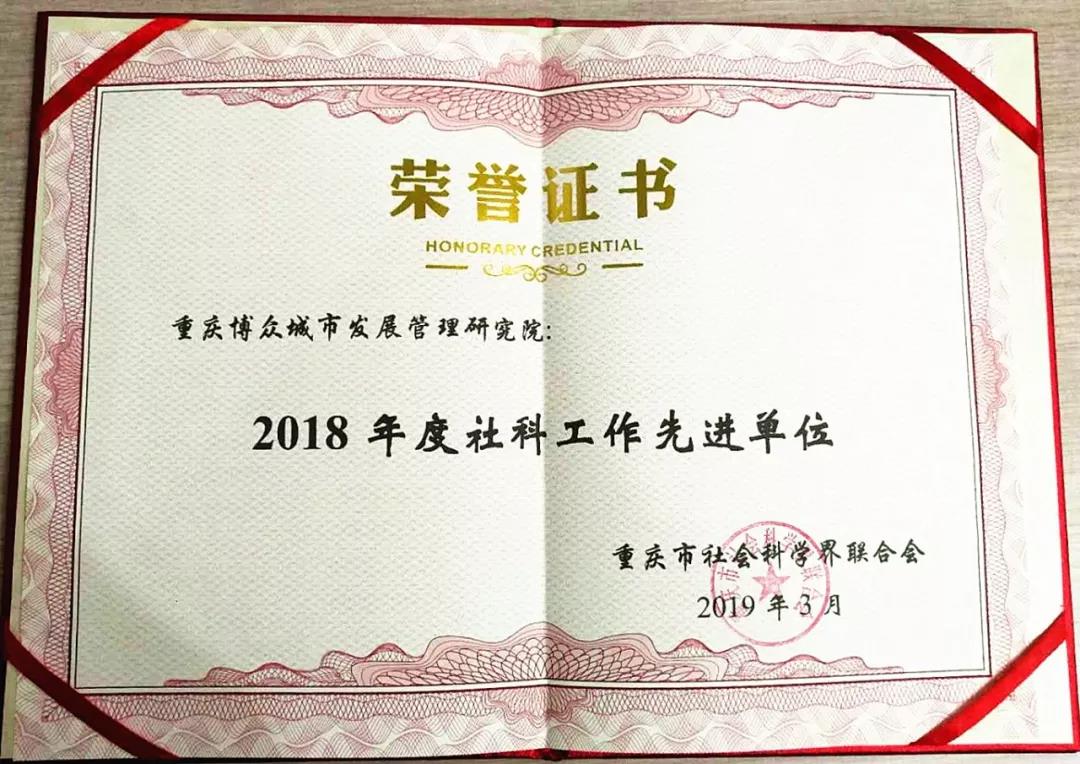 3月29日举行的‘’重庆市社会科学界联合会第六届学术年活动启动仪式‘’上,博众城市发展管理研究院荣获2018年度重庆市社科工作先进单位荣誉称号。