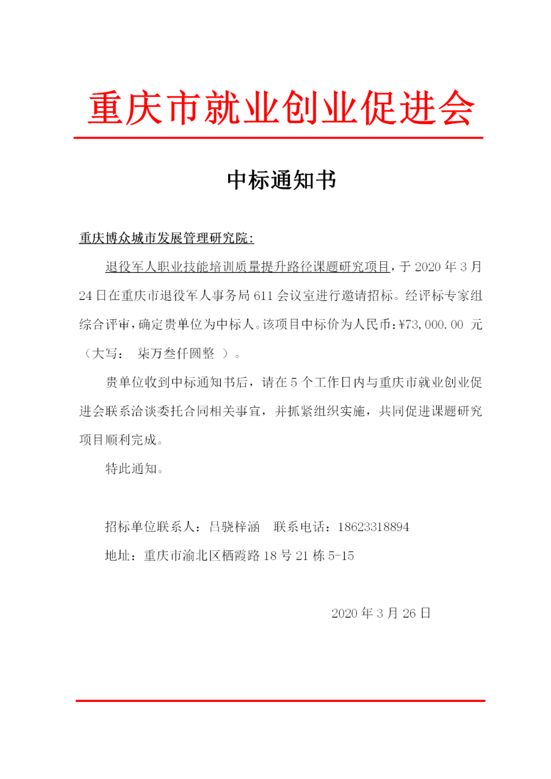 我院申报课题《退役军人技能培训质量提升路径研究》获重庆市就业创业促进会中标。