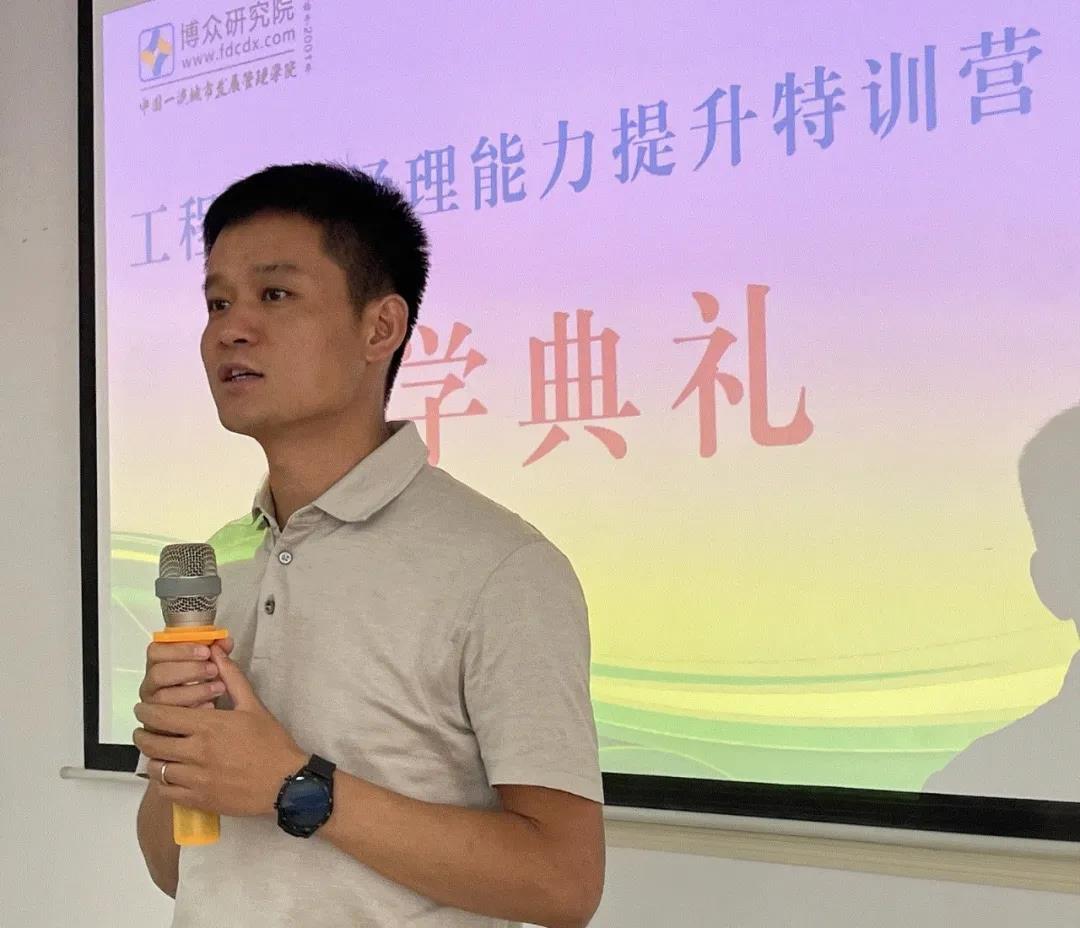 本次开班典礼由博众研究院重庆教学中心主任李晓霞主持,博众研究院院长阎占斌研究员致辞,他鼓励同学们在有限的学习时间,充分利用好博众研究院20年来城建与房地产、物业管理、文旅产业、康养产业四大行业产、学、研资源和年产值逾万亿的校友平台学以致用。重庆现代建筑产业发展研究院副院长赵锦新介绍了重庆现代建筑产业发展研究院的基本情况以及发展目标。新学员代表中铁置业集团贵州(西南)公司指挥长张南在开班典礼上发言。