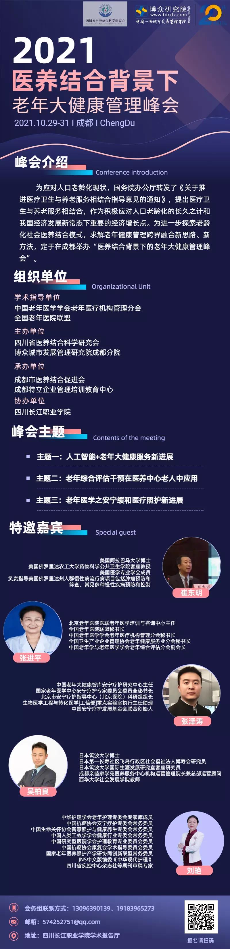 为应对人口老龄化现状,国务院办公厅转发了《关于推进医疗卫生与养老服务相结合指导意见的通知》(国办发〔2015〕84号),提出医疗卫生与养老服务相结合,作为积极应对人口老龄化的长久之计和我国经济发展新常态下重要的经济增长点。为进一步探索老龄化社会医养结合模式,求解老年健康管理跨界融合新思路、新方法,博众研究院成都分院与四川省医养结合科学研究会定于2021年10月29日-31日在成都共同举办“医养结合背景下老年大健康管理峰会”。