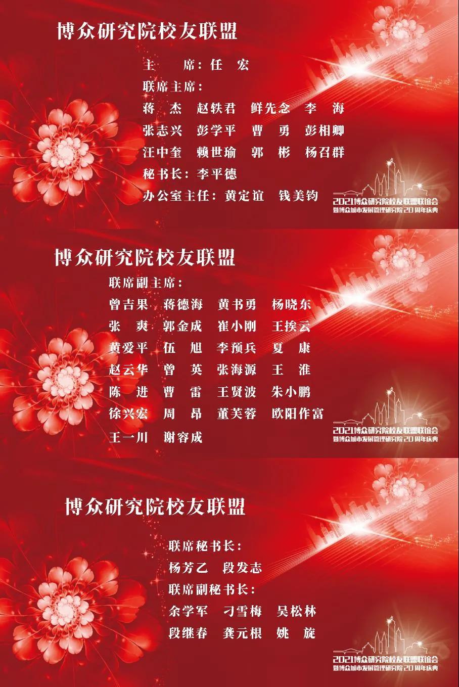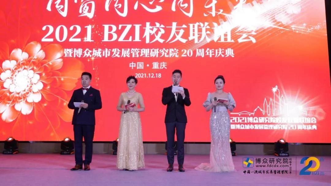 2021年12月18日,博众研究院20周年庆典在重庆成功举办,500余位全国各地的师生校友,产学研伙伴济济一堂。共祝博众研究院创院20周年华诞,庆典由博众研究院各MBA教学项目版块学员代表主持,博众研究院院长阎占斌、博众研究院校友联盟主席、全球知名科学家任宏分别代表研究院和校友联盟致辞。
